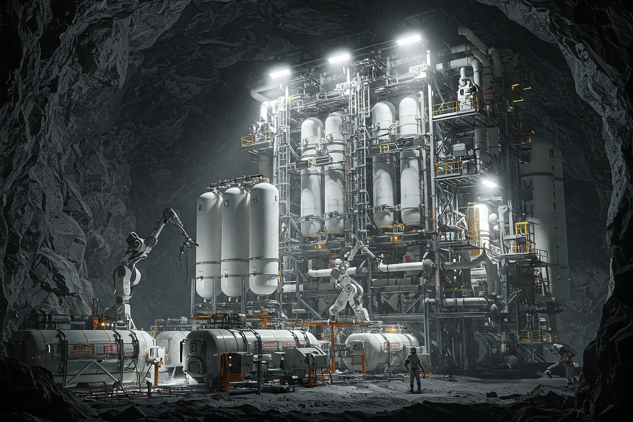 Molten Regolith Electrolysis— A process for releasing oxygen and metals from lunar regolith is now operational in the “industrial sector” of the lava tube network. Protected from large temperature swings experienced on the surface, the plant was simpler to design and operates more reliably. With regolith composed of approximately 45% oxygen, the community will have abundant oxygen for export and to make to create a breathable atmosphere for specific lava tube sections. Join the conversation >>