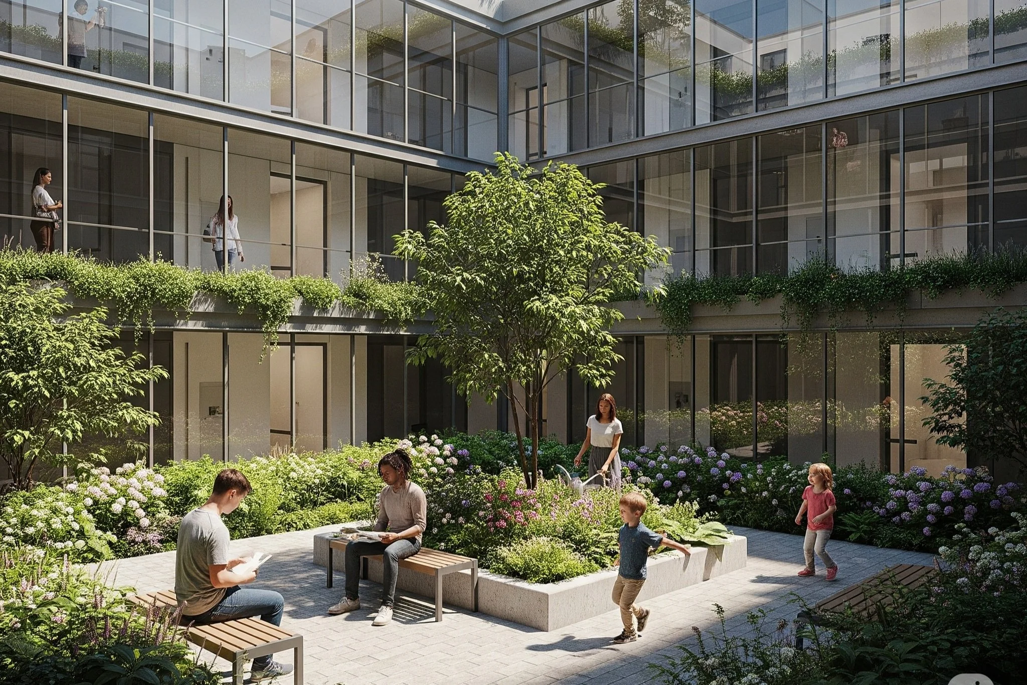 Year 100— Residents and visitors stroll down the grand boulevard.